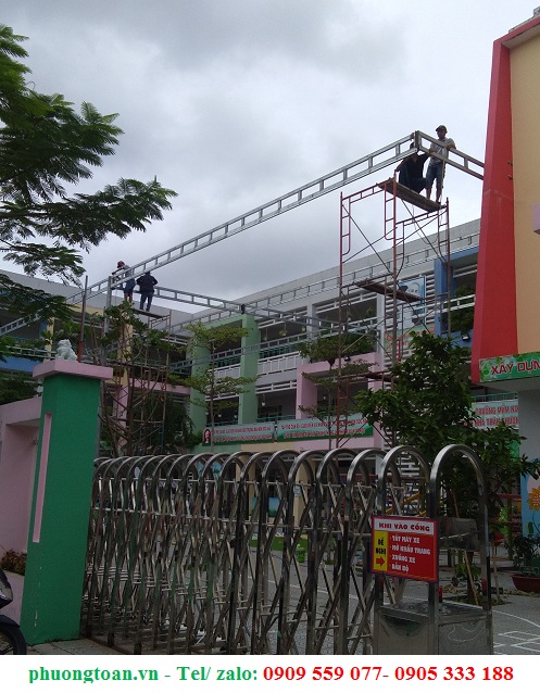 Tiếp theo, là công đoạn tiến hành thi công lắp đặt mái che đòi hỏi tính chuyên nghiệp của mỗi nhân viên, không những tay nghề thuần thục, phải hiểu được kết cấu, cách bố trí mà còn cần tính tỉ mỉ, có cái nhìn thẩm mỹ, chi tiết để giúp cho các giai đoạn lắp đặt thi công được diễn ra trong thời gian nhanh chóng, chuẩn xác và đảm đảo được tính an toàn.