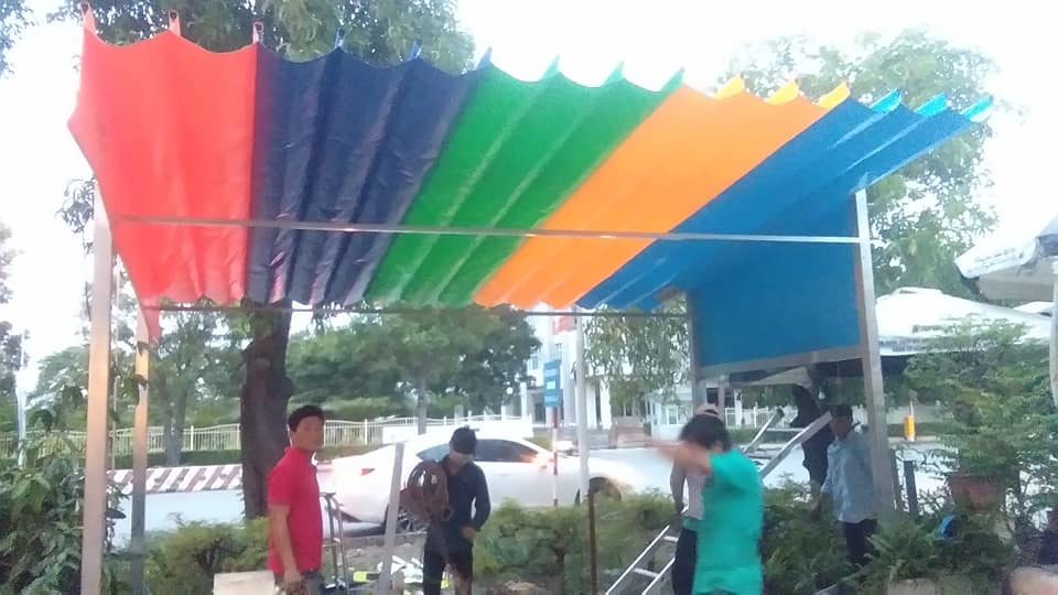 Màu sắc mái xếp: Nạn chọn màu trang nhã, đơn điệu, hay sặc sỡ phụ thuộc vào nhiều yếu tố như bàn ghế và khung cảnh chủ đạo thuộc màu sắc như thế nào. Công ty Phương Toàn sẽ đưa ra nhiều màu sắc phối hợp hài hòa để bạn lựa chọn phù hợp với nhiều mức giá khác nhau. ( Màu xanh dương, màu xanh lá cây, màu nâu tím, màu sọc xanh phối đỏ…)