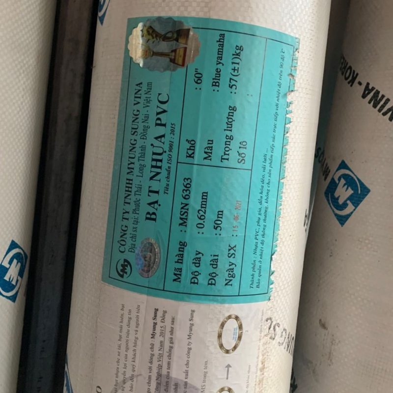 - Bạt Myung Sung chính hãng: Trên mép biên của mỗi cuộn bạt luôn được in phun dòng chữ thương hiệu cực kỳ sắc nét. Nội dung thường bao gồm: tên thương hiệu MYUNG SUNG VINA, công nghệ KOREA TECHNOLOGY, và đôi khi có cả thông số độ dày hoặc mã màu.