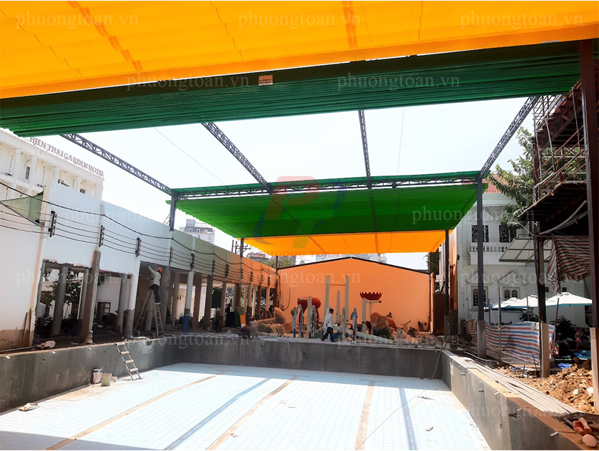 - Thi công mái che bạt kéo cho bể bơi tại Long An