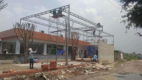 Thi công mái xếp lượn sóng tại KCN Trảng Bom