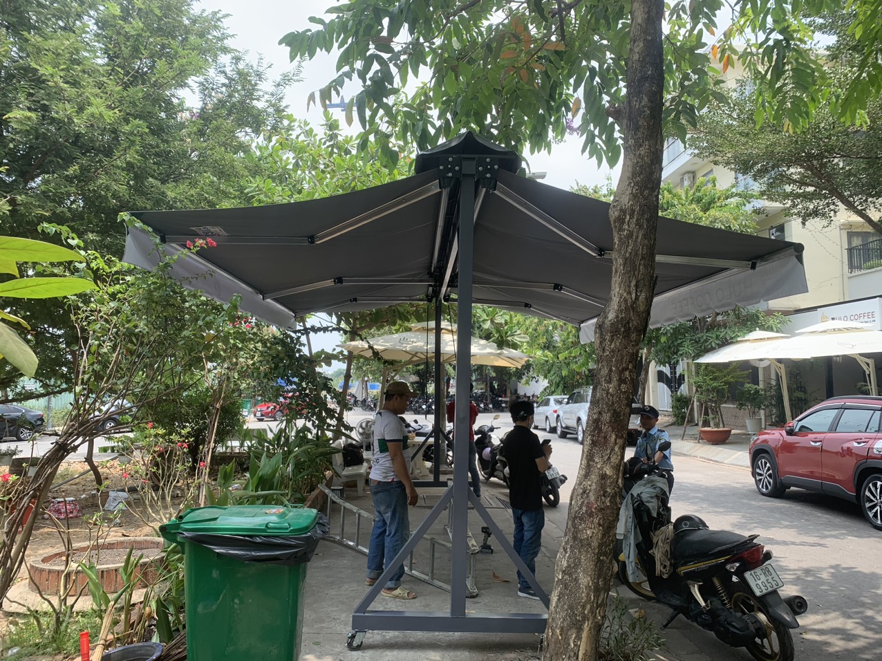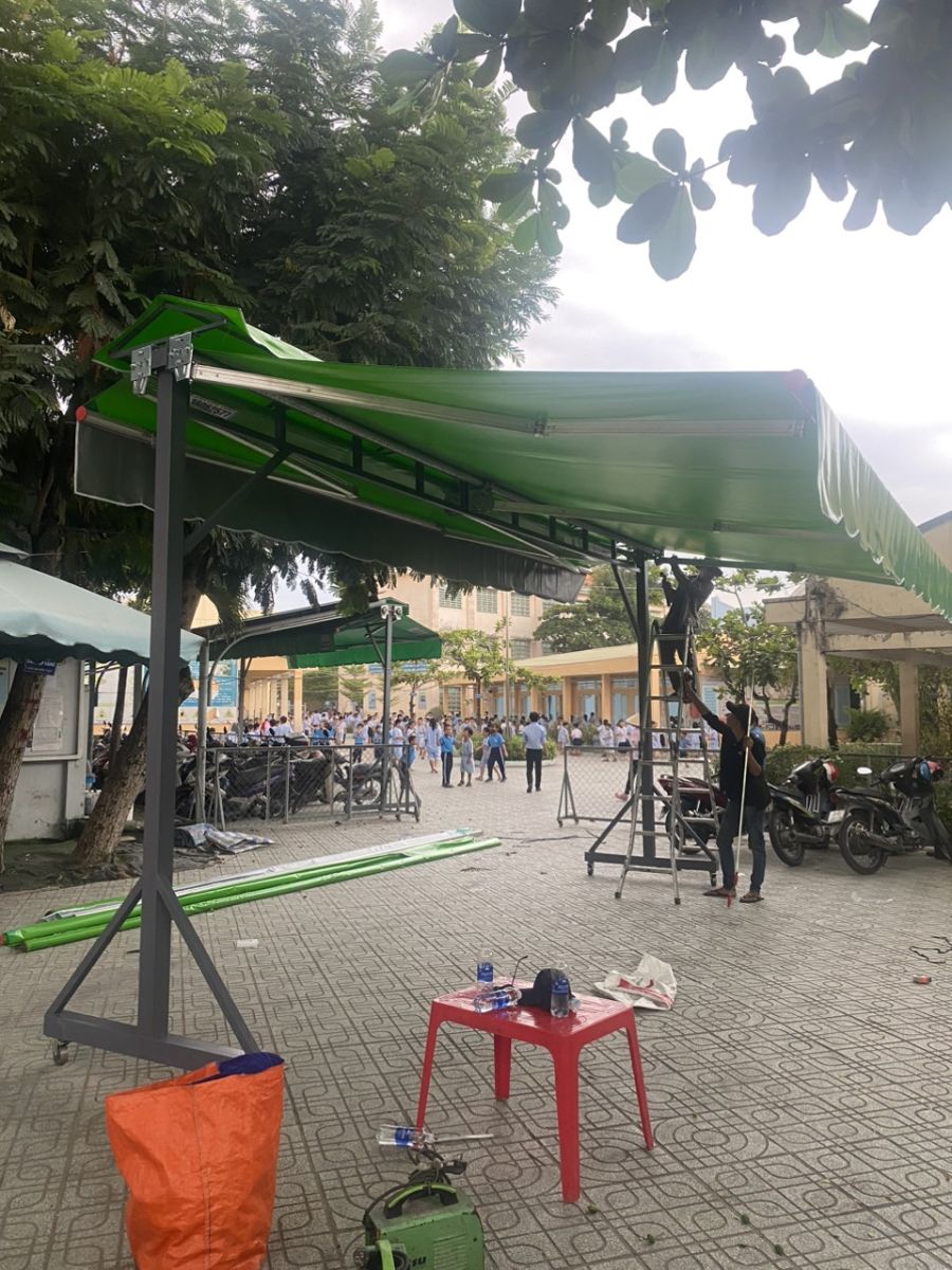 - Mái che chữ A sử dụng chất liệu bạt tốt, khả năng che mưa, che nắng 100% và đảm bảo độ bền cao