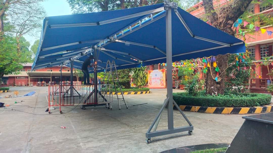 Mái che nắng mưa bằng bạt xếp che nhà hàng, quán nhậu, quán cafe, sân trường, hội trường, hồ bơi hay làm mái che sân thượng, ban công, bạt che nắng sân vườn,…
