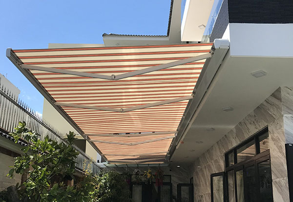 Mái hiên bạt xếp là loại mái che đang sử dụng thịnh hành trong cuộc sống. Với chất liệu bằng vải bạt thiết kế dạng kiểu lượn sóng đem lại tính độc đáo, ấn tượng cho công trình.