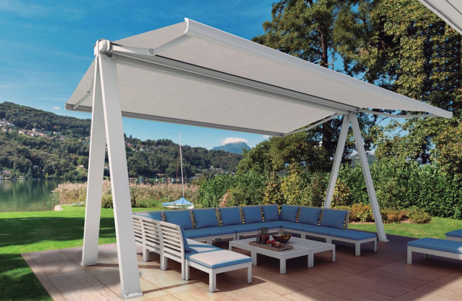 +Mái hiên được thiết kế độc đáo với phần trụ ở phía dưới và phần mái di động ở trên và có hình dáng giống chữ A.