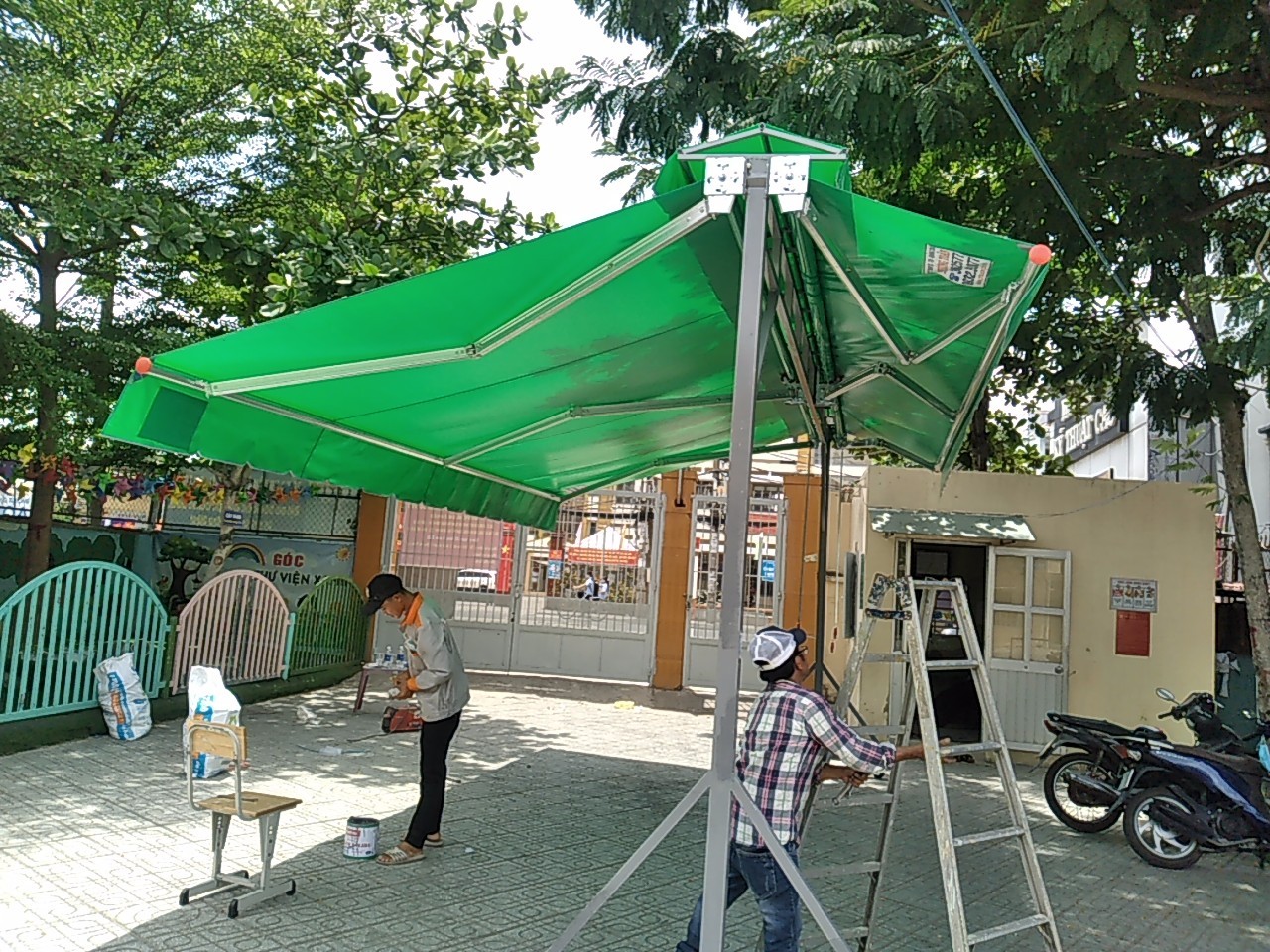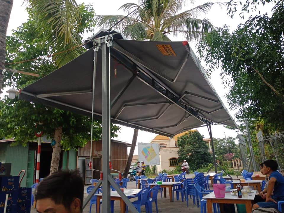- Che nắng mưa rất tốt với chất liệu vải bạt nhập khẩu Đài Loan, Hàn Quốc, Nhật Bản và khung xếp không gỉ.