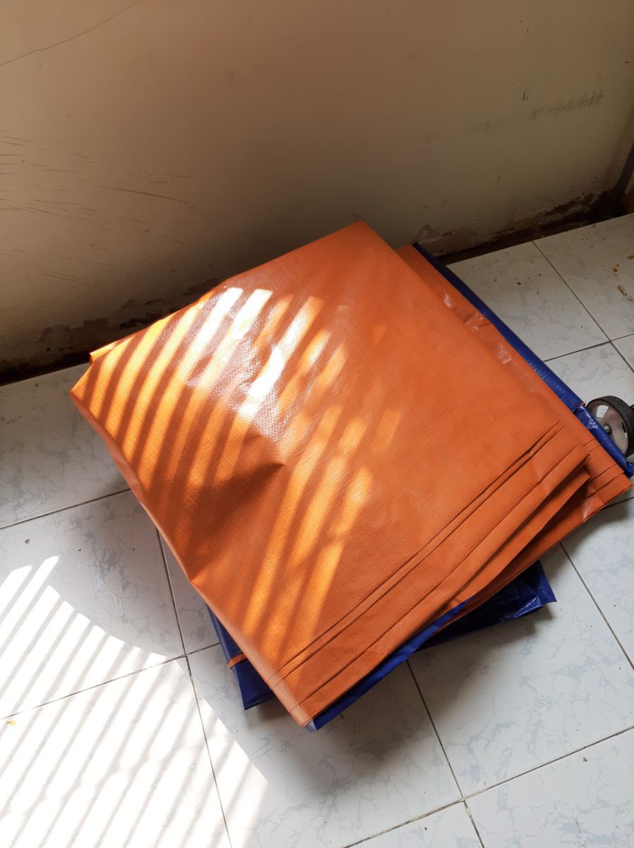 Bạt xanh cam chất liệu nhựa PE thường được sử dụng che nắng mưa trong thời gian ngắn, tạm thời.