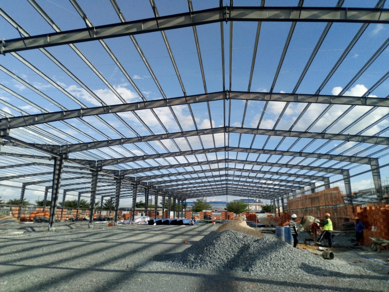 Kết cấu khung thép sơn chống rỉ 2 lớp được lắp ghép từ các cấu kiện thép liên kết bằng vít và các mối hàn có khả năng chịu lực cao. Phía trên là phần mái tôn có cấu tạo khá đơn giản so với những vật liệu khác nên rất gọn nhẹ. Đặc biệt mẫu nhà xưởng này có thể dễ dàng thay đổi khi doanh nghiệp muốn nâng cấp hay tân trang.