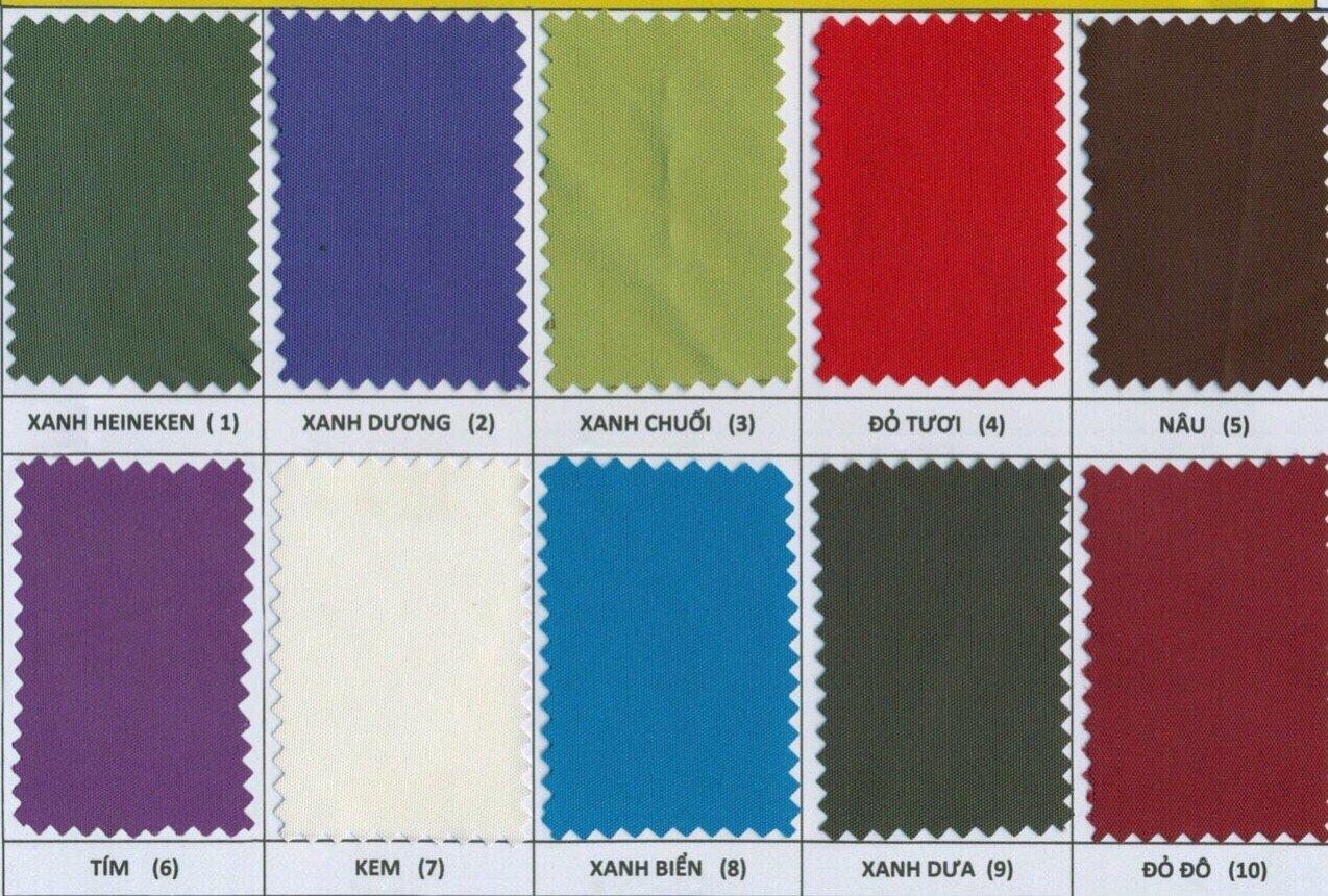 - Chất liệu áo dù/ vải dù: ô dù che ngoài trời của chúng tôi luôn sử dụng các chất liệu chống thấm cao cấp như vái bô, polyester hoặc bạt hiflex để tạo bạt che có màu sắc đa dạng, phù hợp với mọi không gian trưng bày.