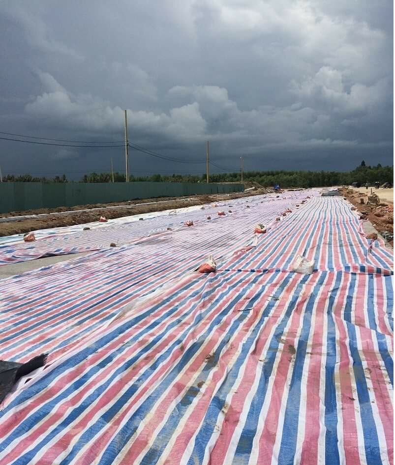 Tại các công trình xây dựng tại các thành phố lớn như TPHCM, Bình Dương, Đồng Nai đều sử dụng bạt che mưa nắng để che chắn bụi, che nắng mưa. Che chắn các nguyên vật liệu xây dựng như gạch, cát, đá…Ngoài ra bạt còn được sử dụng để lót sàn đổ bê tông. Các công trình như xử lý rác thải, công trình thủy điện cũng cần sử dụng bạt thường xuyên.