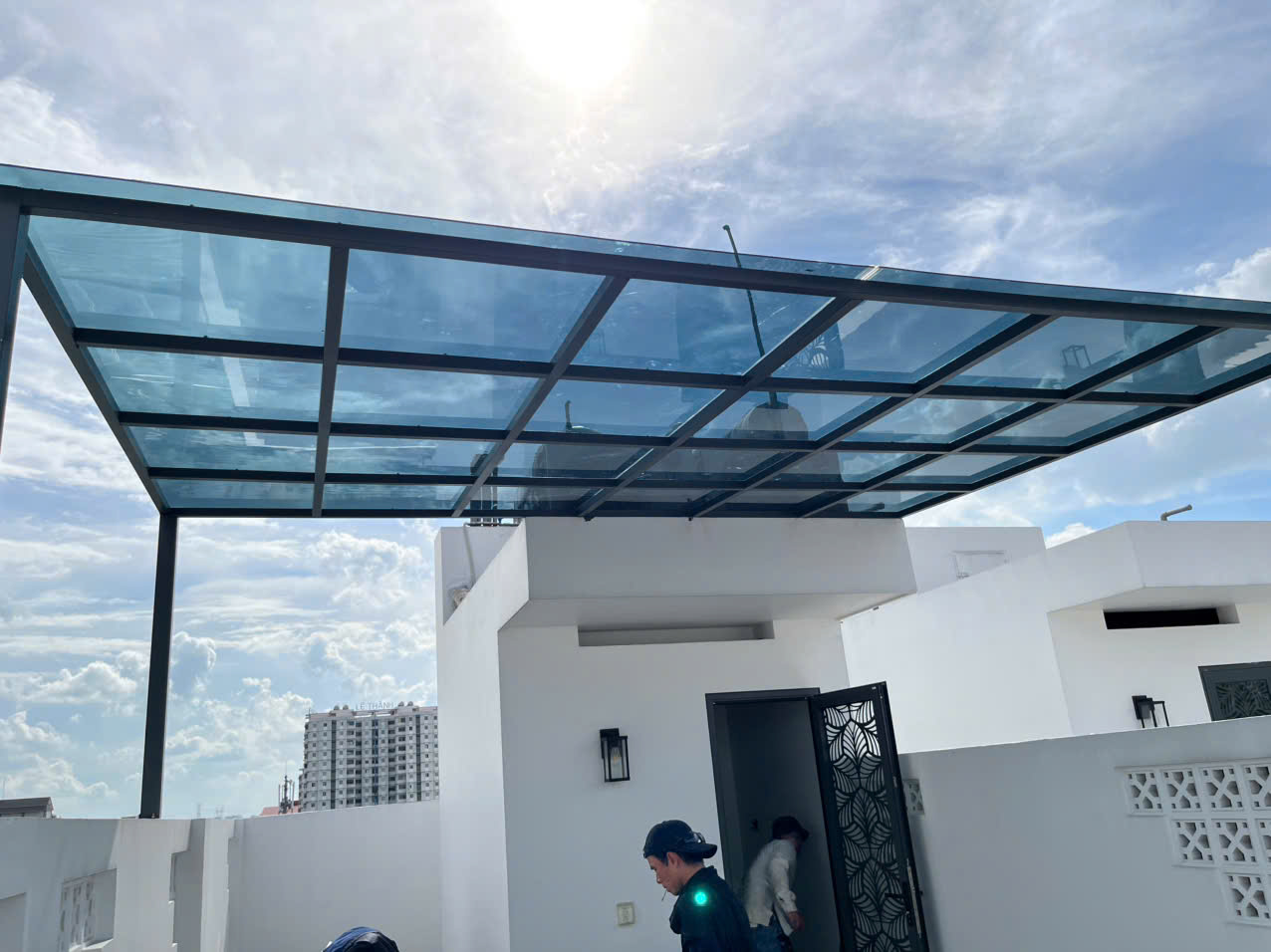 Đội ngũ thợ làm mái che Phương Toàn thực hiện thi công mái poly lấy sáng tỉ mỉ, chuyên nghiệp, từ khảo sát đến bàn giao: